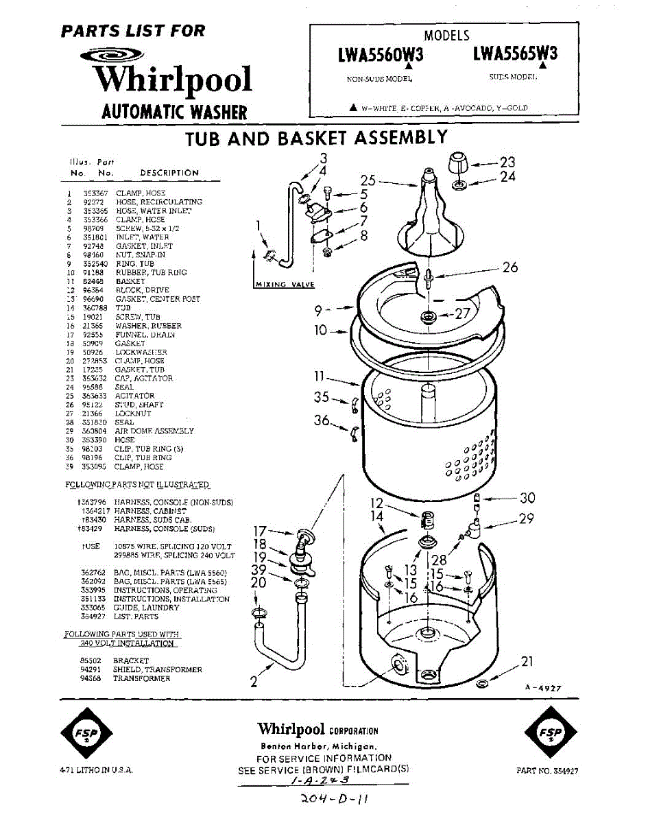 Parts for Whirlpool LWA5560W3: 01 - Section Parts
