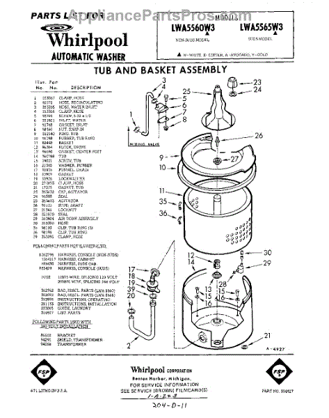 Parts for Whirlpool LWA5565W3: 01 - Section Parts