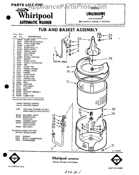 Parts for Whirlpool LWA5800W1: 01 - Section Parts