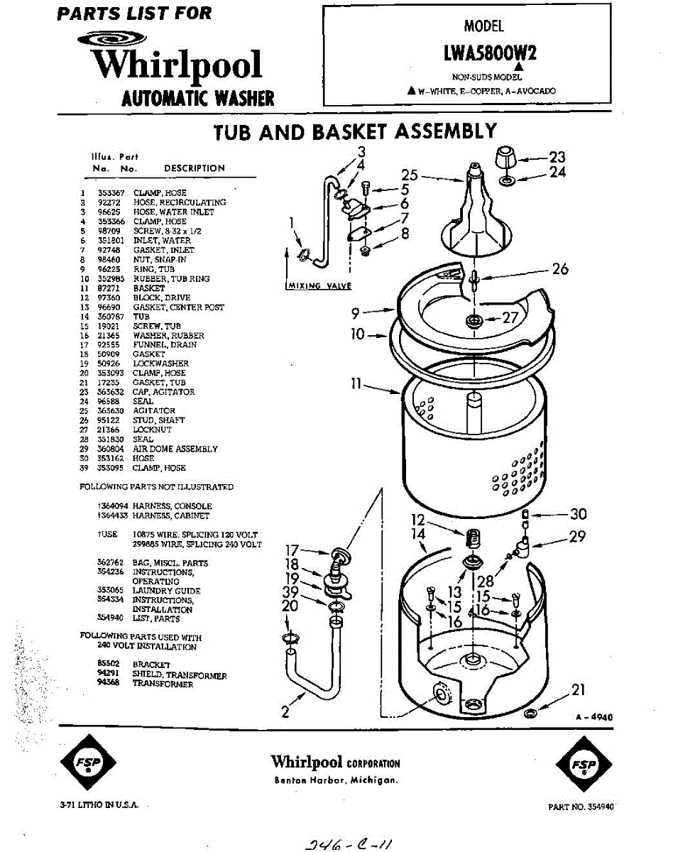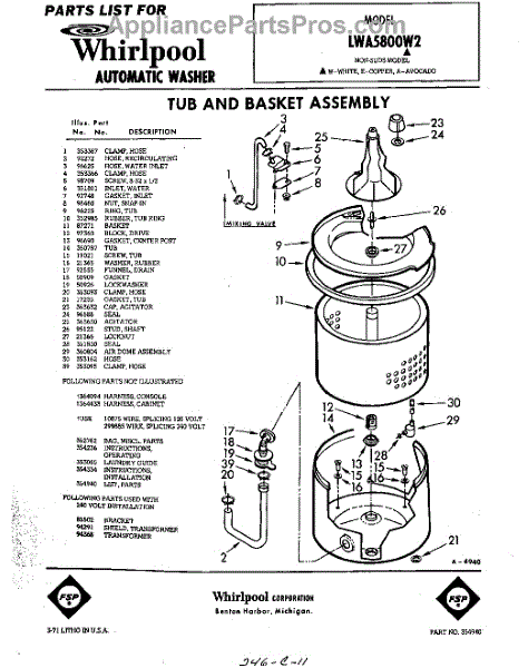Parts for Whirlpool LWA5800W2: 01 - Section Parts