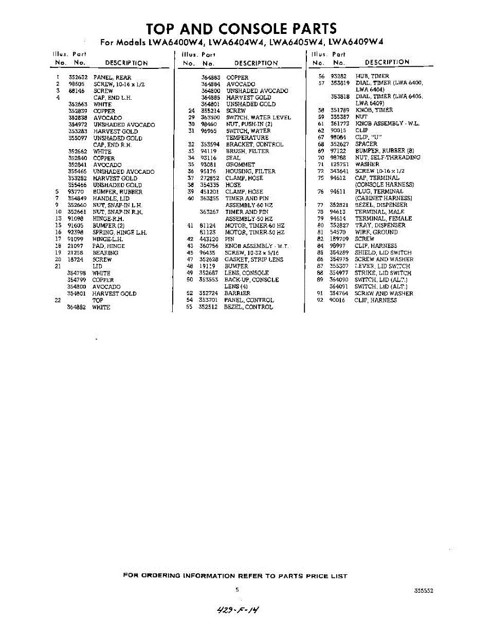 Parts for Whirlpool LWA6400W4: 05 - Section Parts