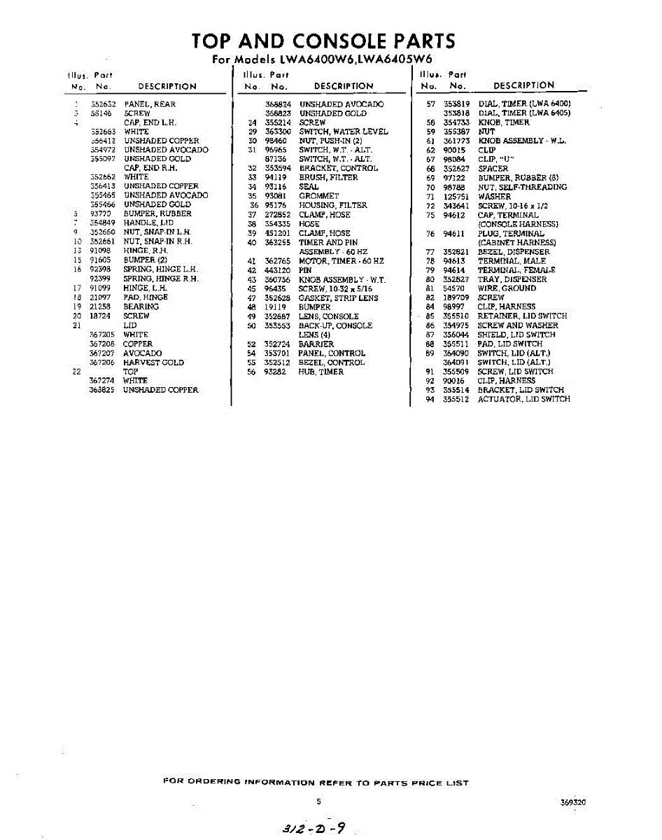 Parts for Whirlpool LWA6400W6: 05 - Section Parts