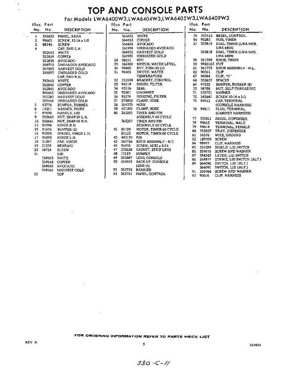 Parts for Whirlpool LWA6409W3: 05 - Section Parts