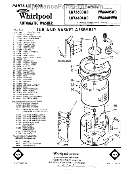 Parts for Whirlpool LWA6604W0: 01 - Section Parts