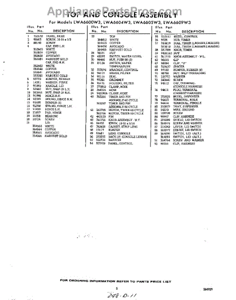 Parts for Whirlpool LWA6604W3: 05 - Section Parts