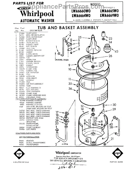 Parts for Whirlpool LWA6665W0: 01 - Section Parts