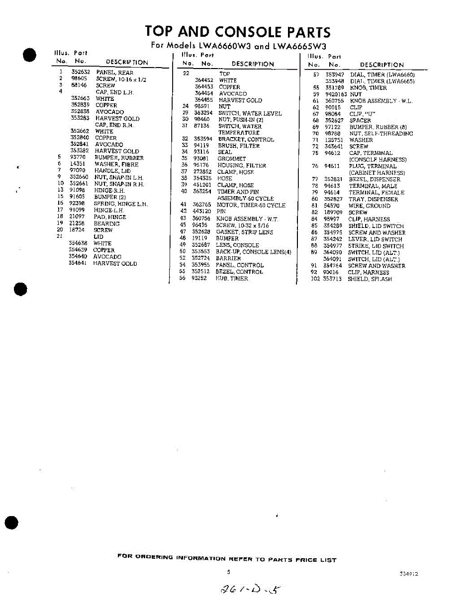Parts for Whirlpool LWA6665W3: 05 - Section Parts