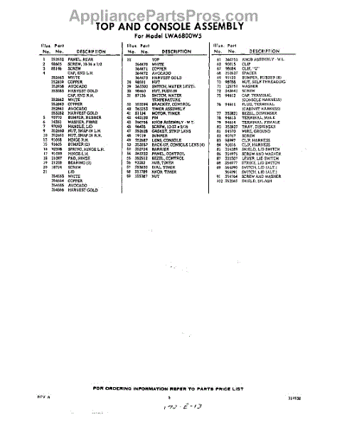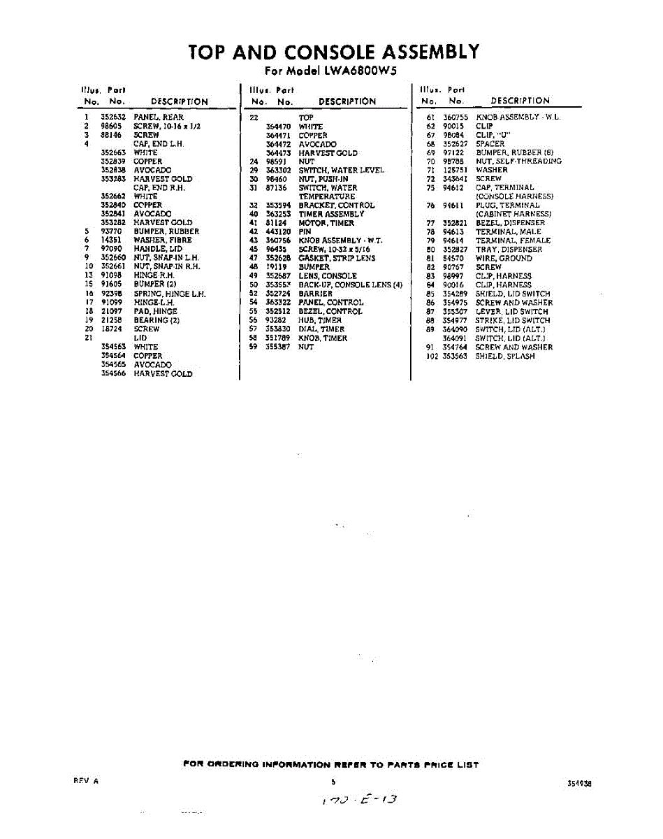 Parts for Whirlpool LWA6800W5: 05 - Section Parts
