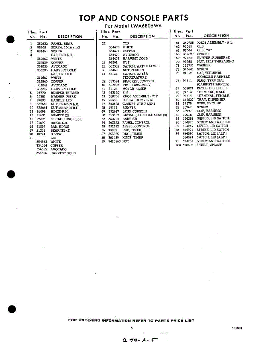 Parts for Whirlpool LWA6805W6: 05 - Section Parts