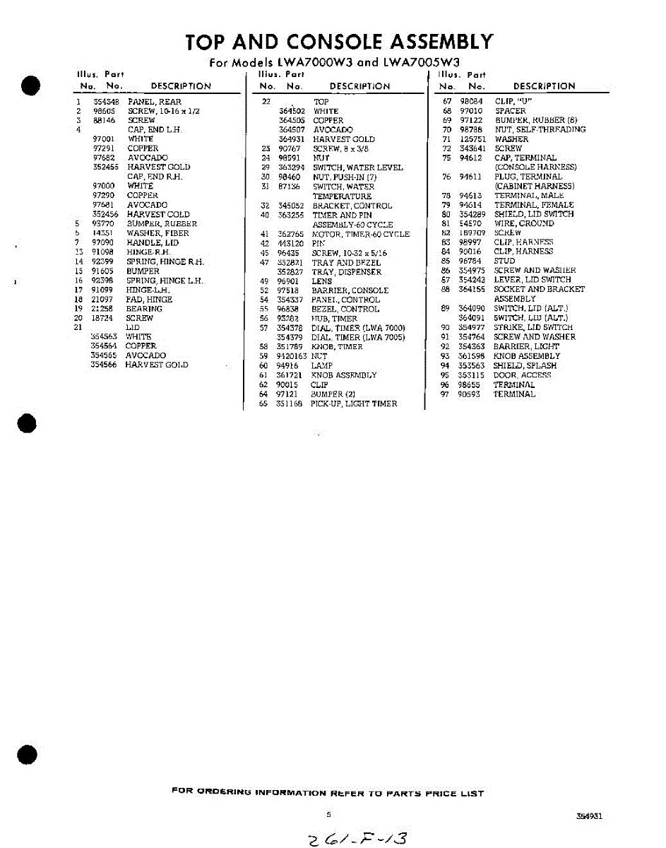 Parts for Whirlpool LWA7000W3: 05 - Section Parts