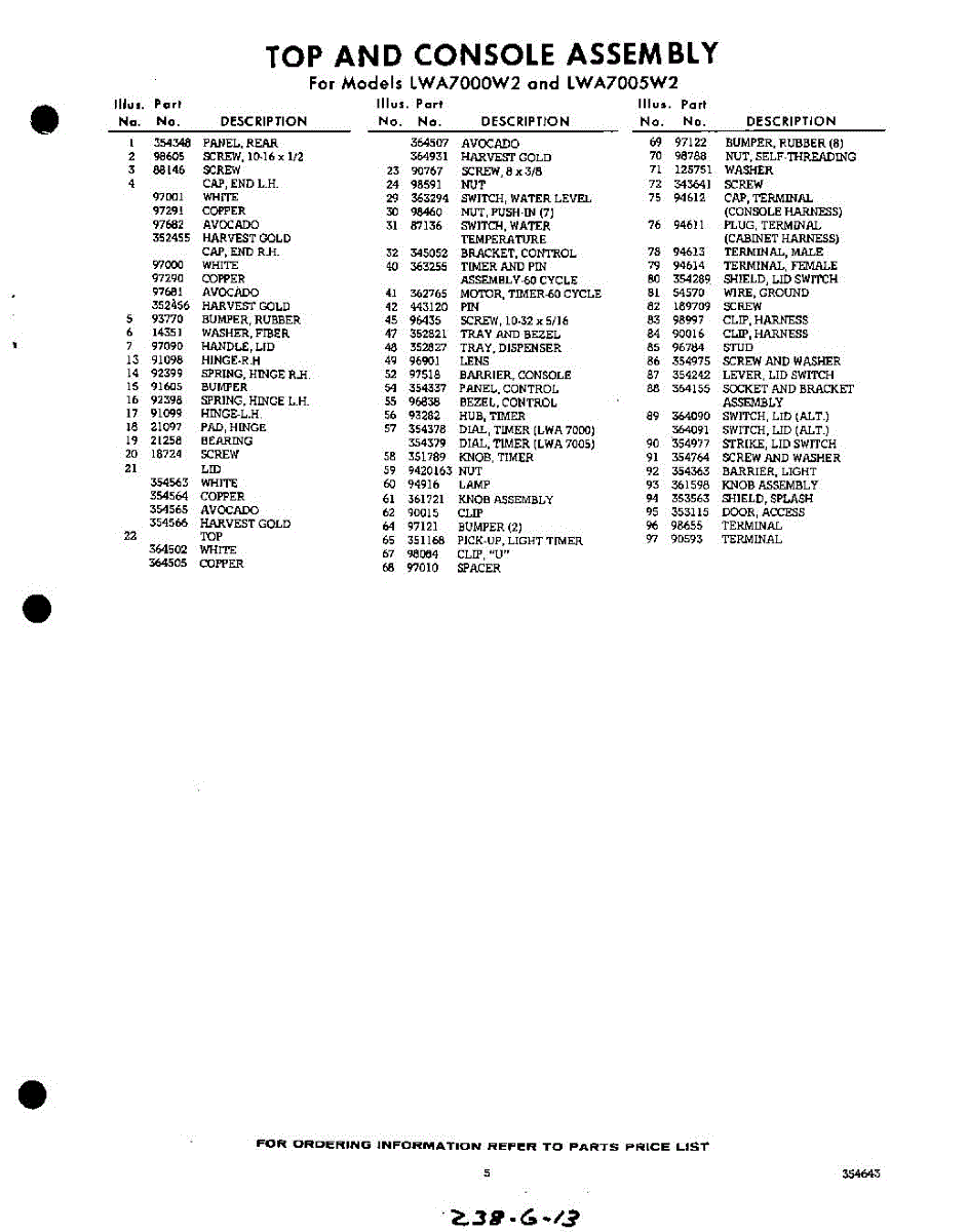 Parts for Whirlpool LWA7005W2: 05 - Section Parts