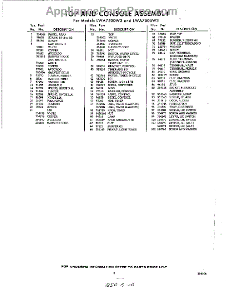 Parts for Whirlpool LWA7500W3: 05 - Section Parts