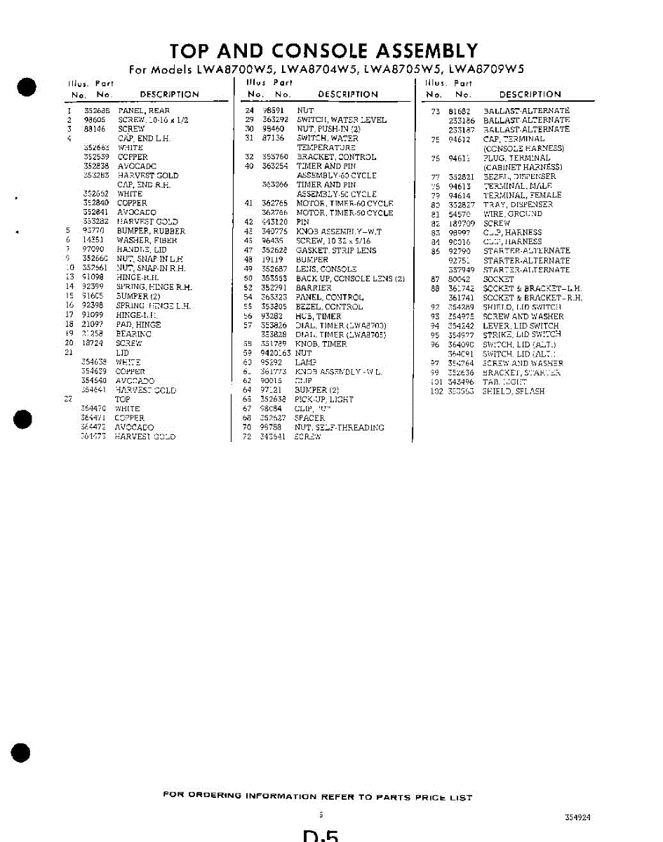Parts for Whirlpool LWA8704W5: 05 - Section Parts
