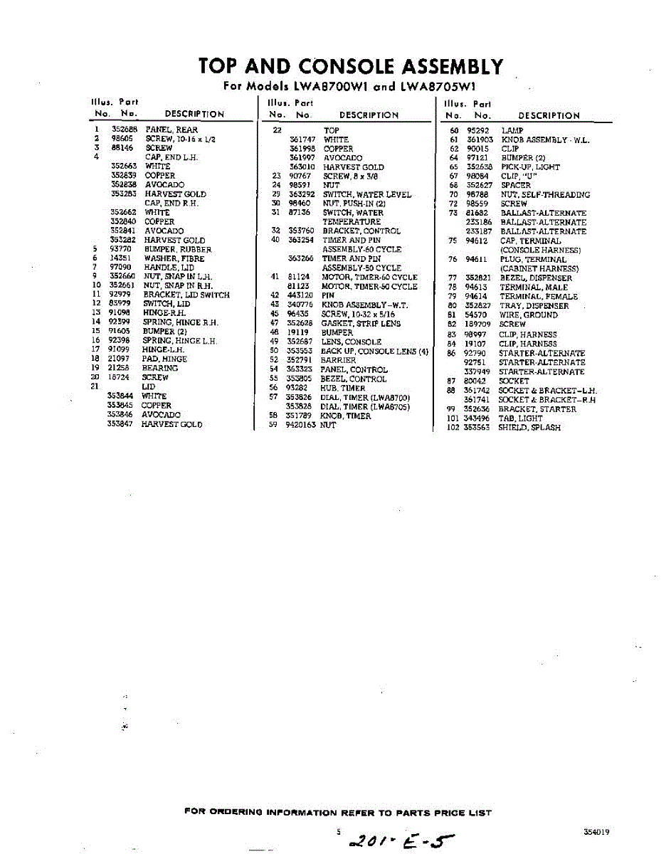Parts for Whirlpool LWA8705W1: 05 - Section Parts