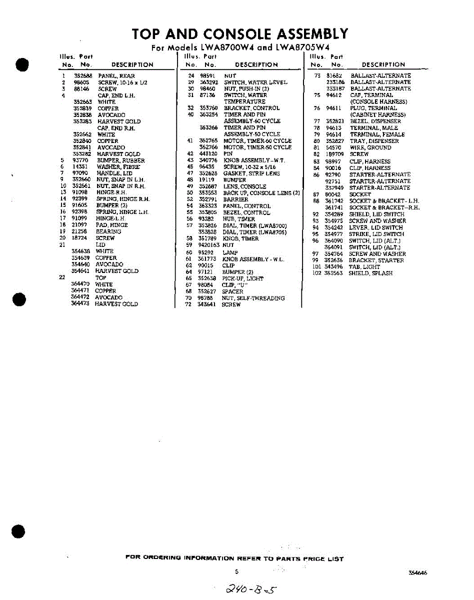 Parts for Whirlpool LWA8705W4: 05 - Section Parts