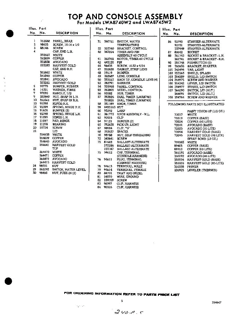 Parts for Whirlpool LWA8740W2: 05 - Section Parts