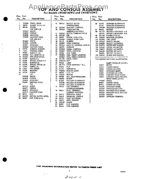 Parts for Whirlpool LWA8745W2: 05 - Section Parts