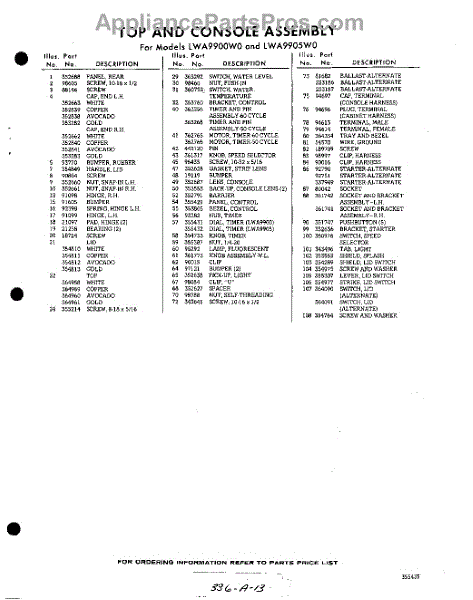 Parts for Whirlpool LWA9905W0: 05 - Section Parts