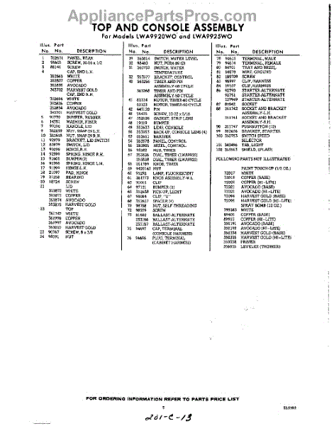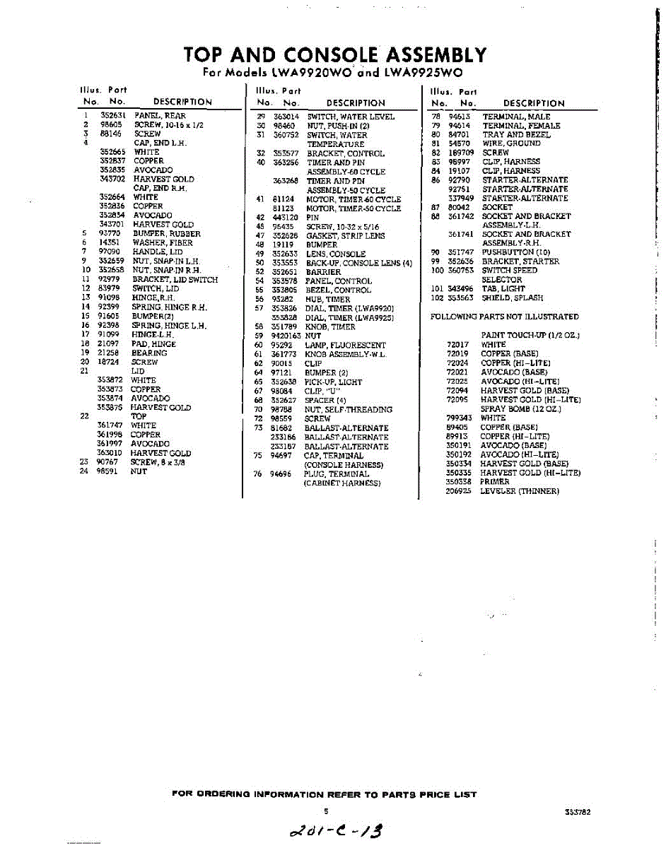 Parts for Whirlpool LWA9920W0: 05 - Section Parts