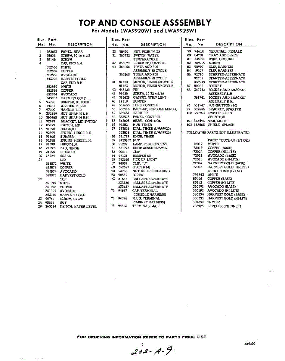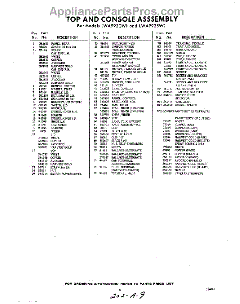 Parts for Whirlpool LWA9920W1: 05 - Section Parts