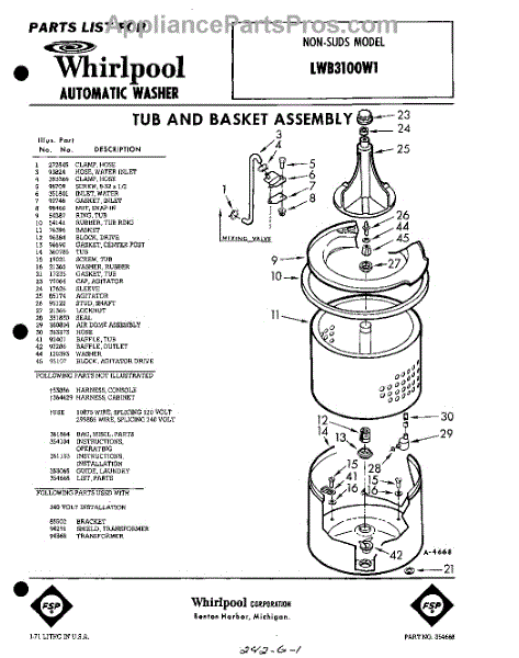Parts for Whirlpool LWB3100W1: 01 - Section Parts