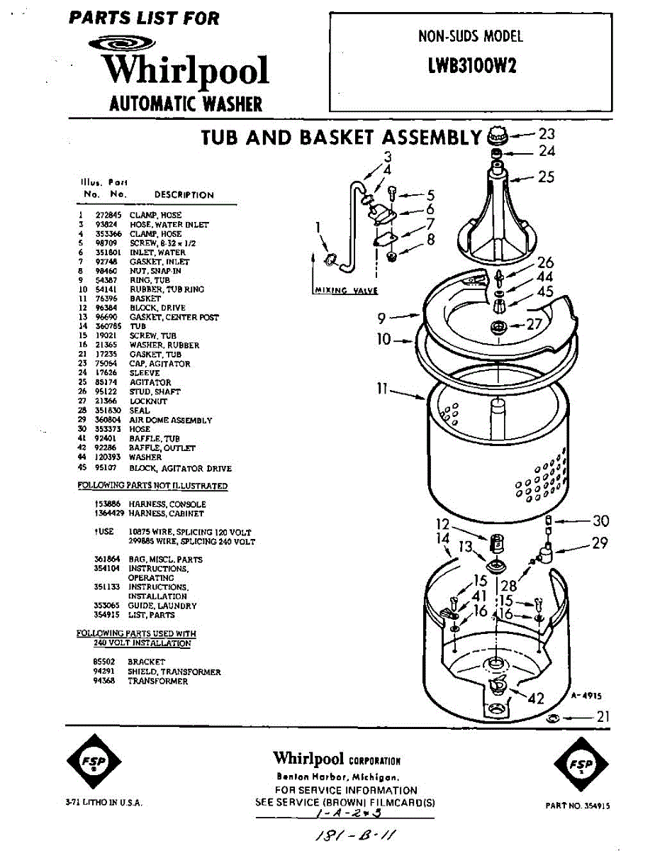 Parts for Whirlpool LWB3100W2: 01 - Section Parts