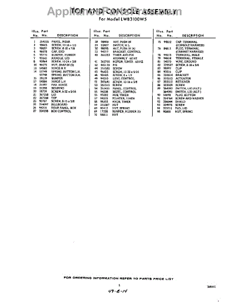 Parts for Whirlpool LWB3100W5: 05 - Section Parts