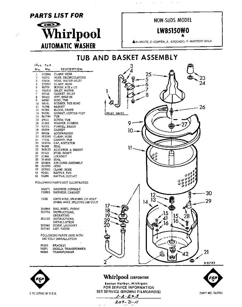 Parts for Whirlpool LWB5150W0: 01 - Section Parts