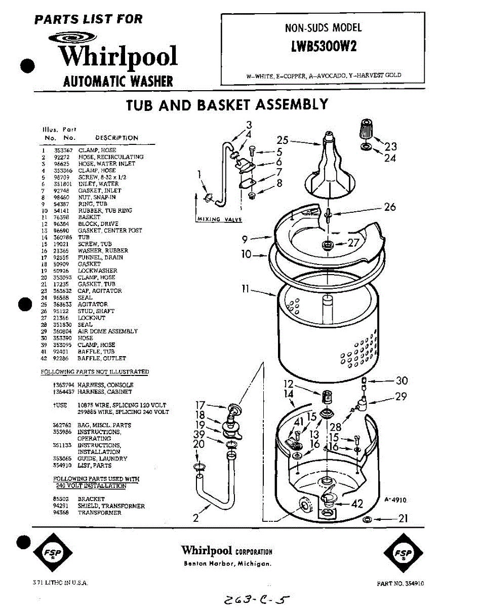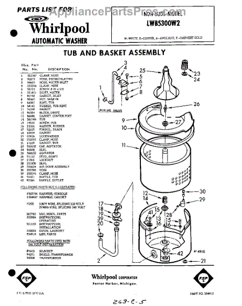 Parts for Whirlpool LWB5300W2: 01 - Section Parts