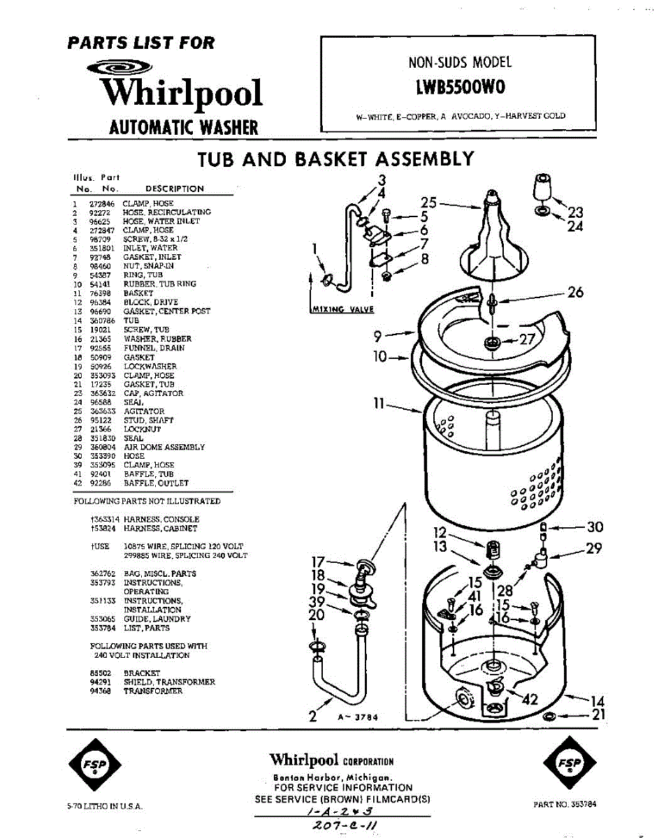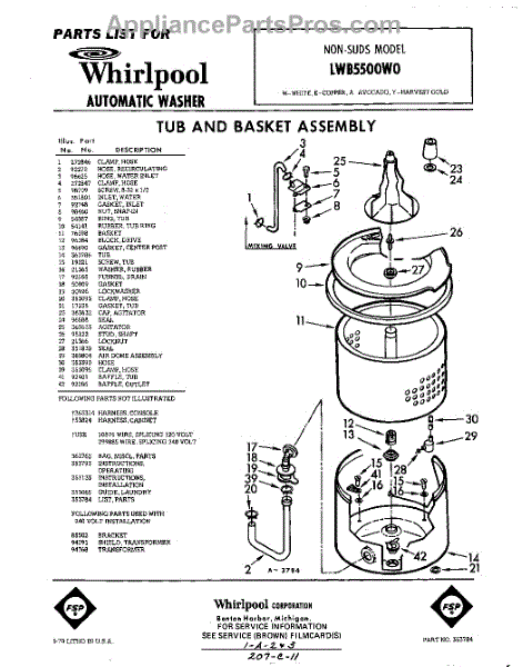 Parts for Whirlpool LWB5500W0: 01 - Section Parts