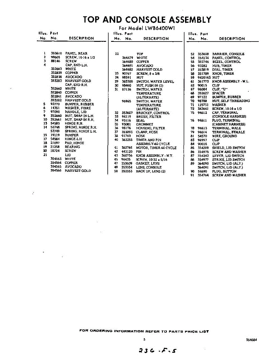 Parts for Whirlpool LWB6400W1: 05 - Section Parts