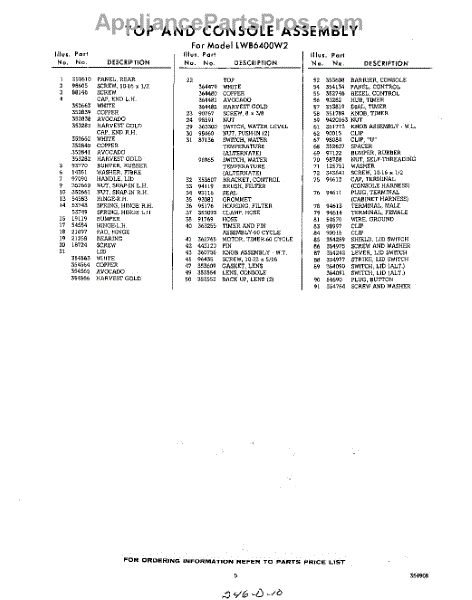 Parts for Whirlpool LWB6400W2: 05 - Section Parts