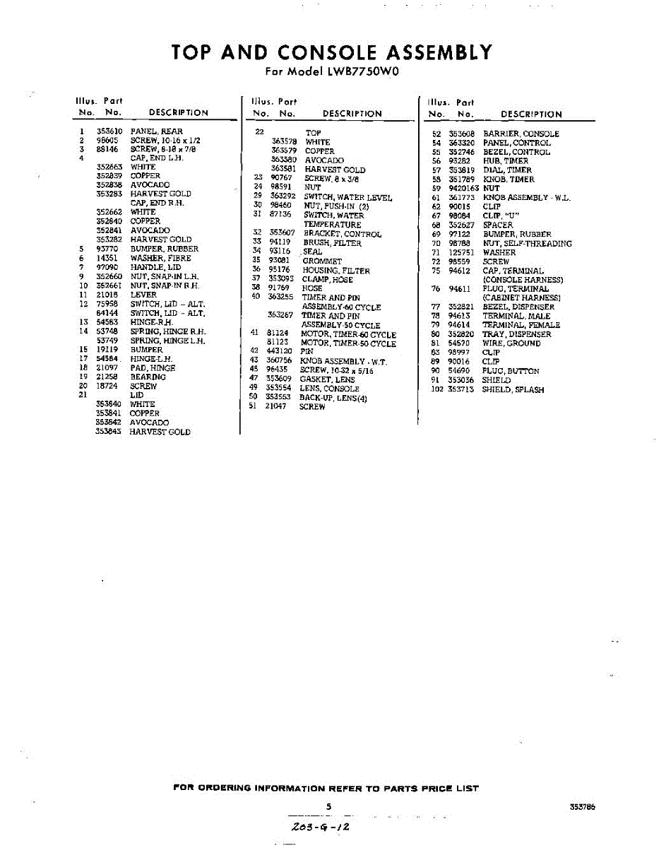 Parts for Whirlpool LWB7750W0: 05 - Section Parts