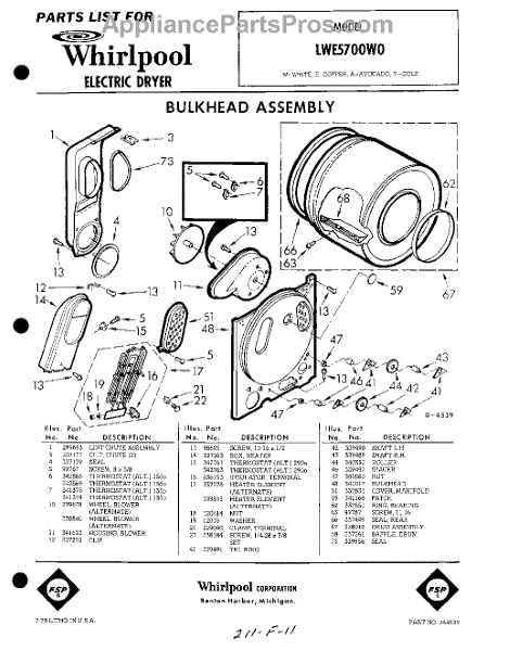 Parts for Whirlpool LWE5700W0: 01 - Section Parts