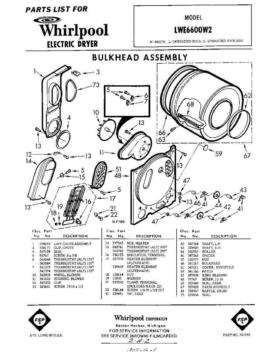 Parts for Whirlpool LWE6600W2: 01 - Section Parts