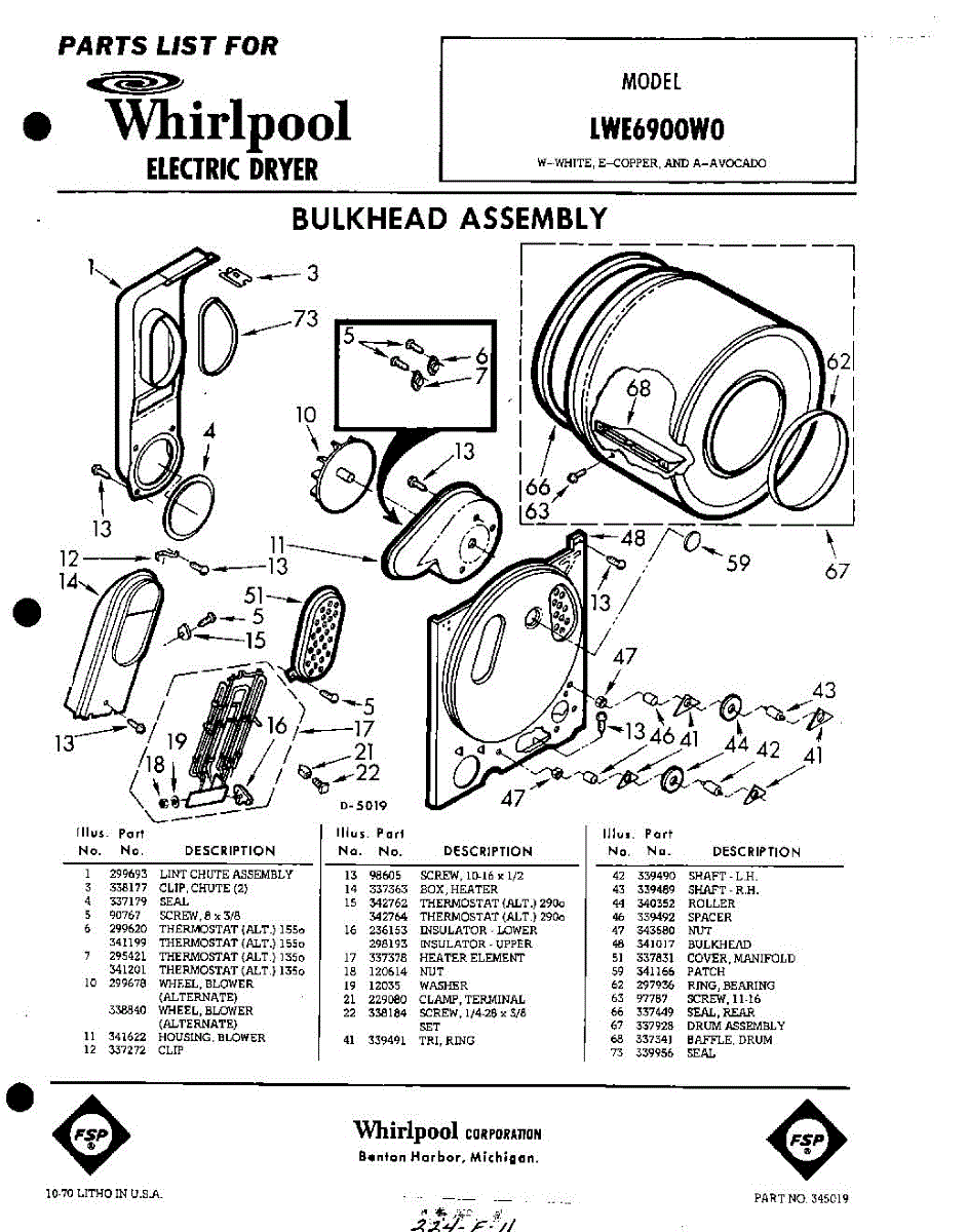 Parts for Whirlpool LWE6900W0: 01 - Section Parts