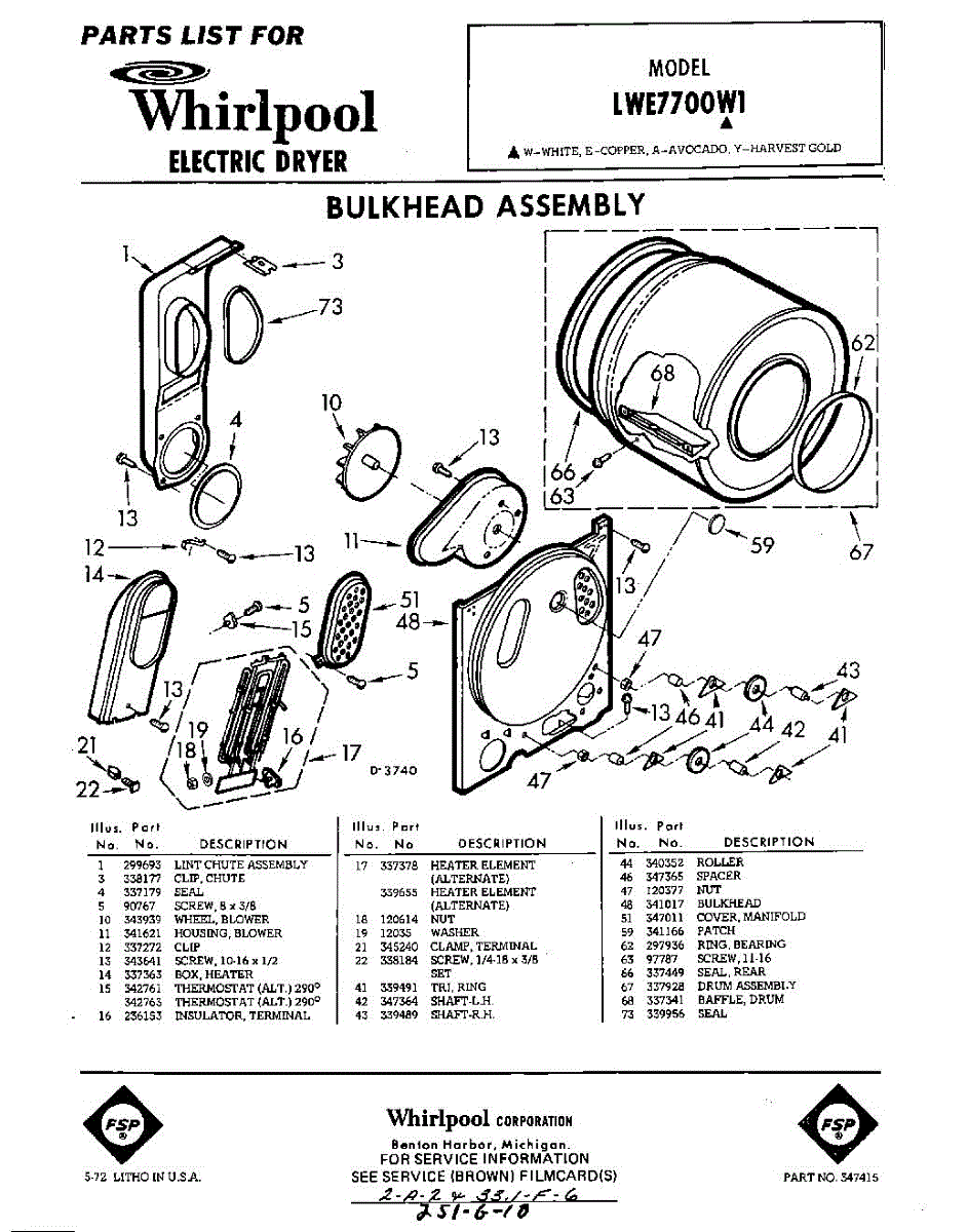 Parts for Whirlpool LWE7700W1: 01 - Section Parts