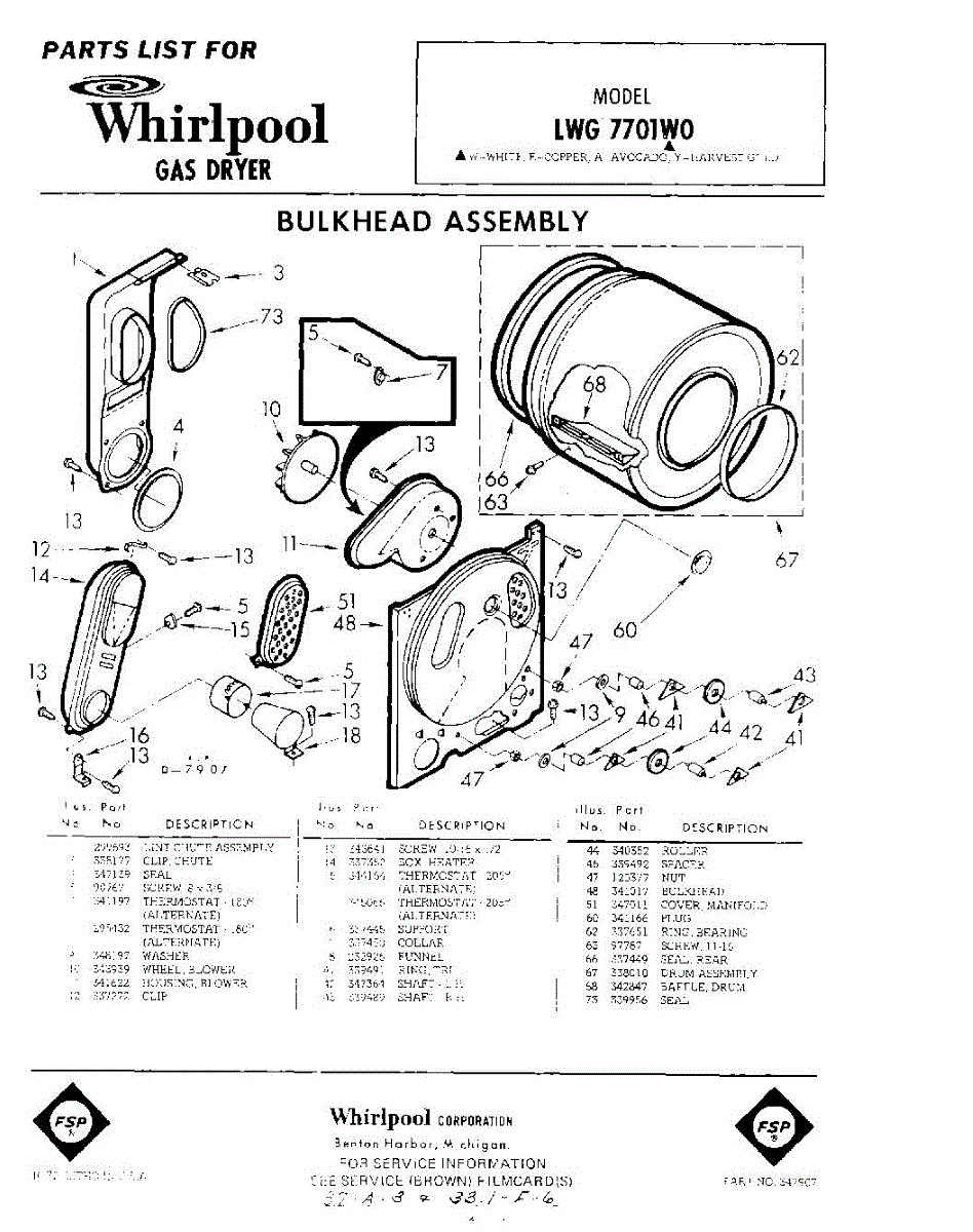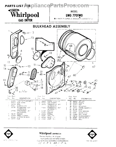 Parts for Whirlpool LWG7701W0: 01 - Section Parts