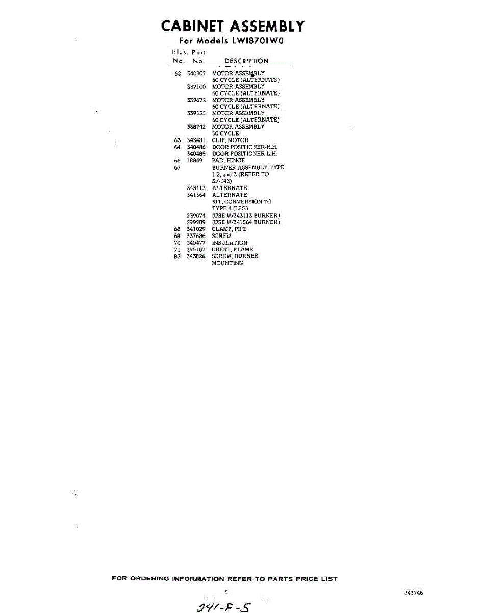 Parts for LWI8701W0