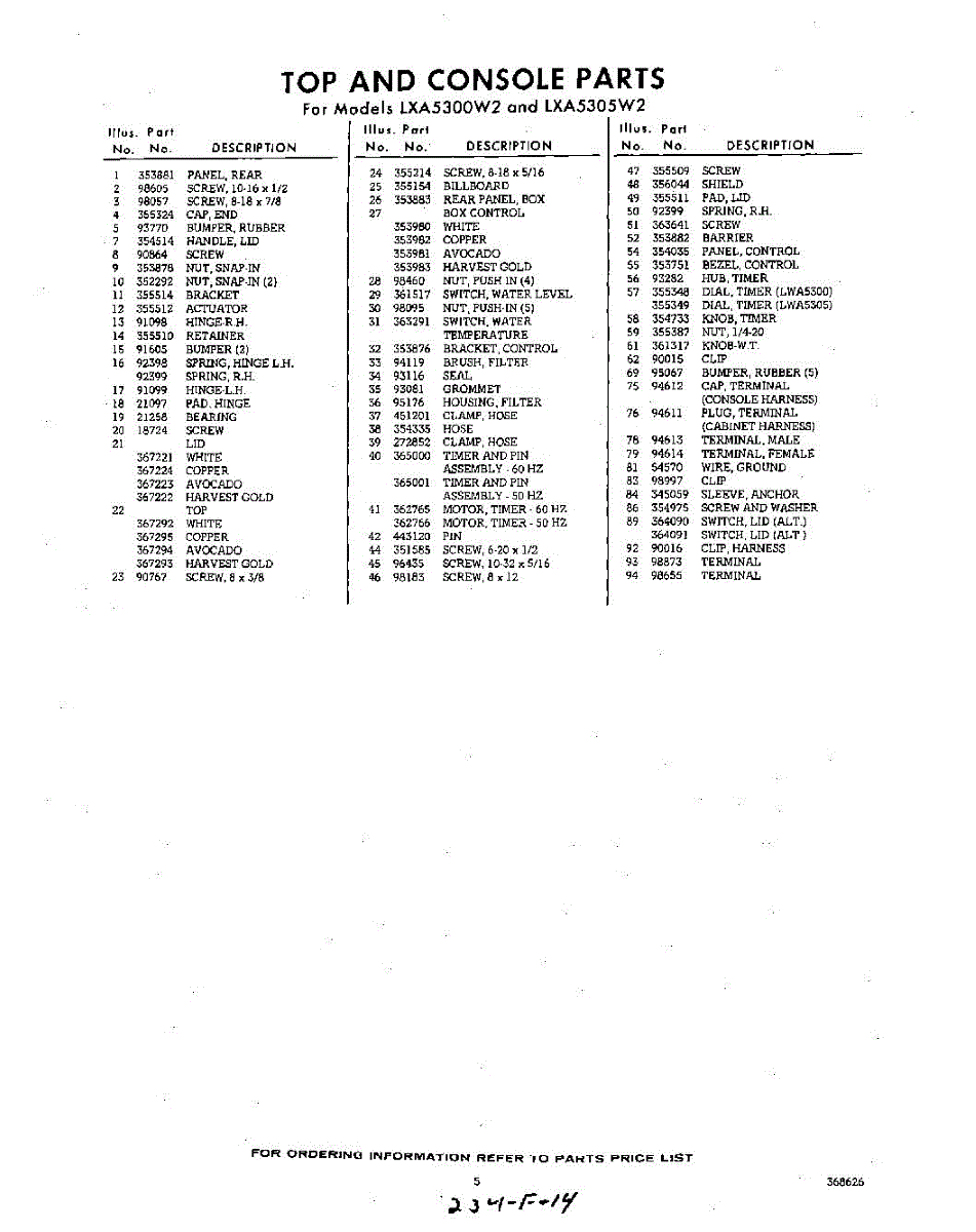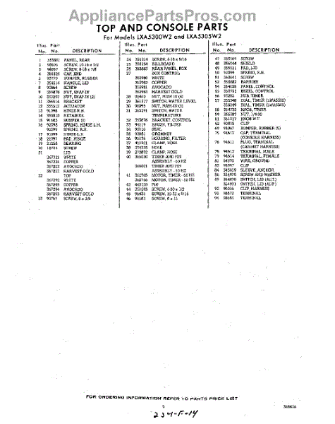 Parts for Whirlpool LXA5300W2: 05 - Section Parts