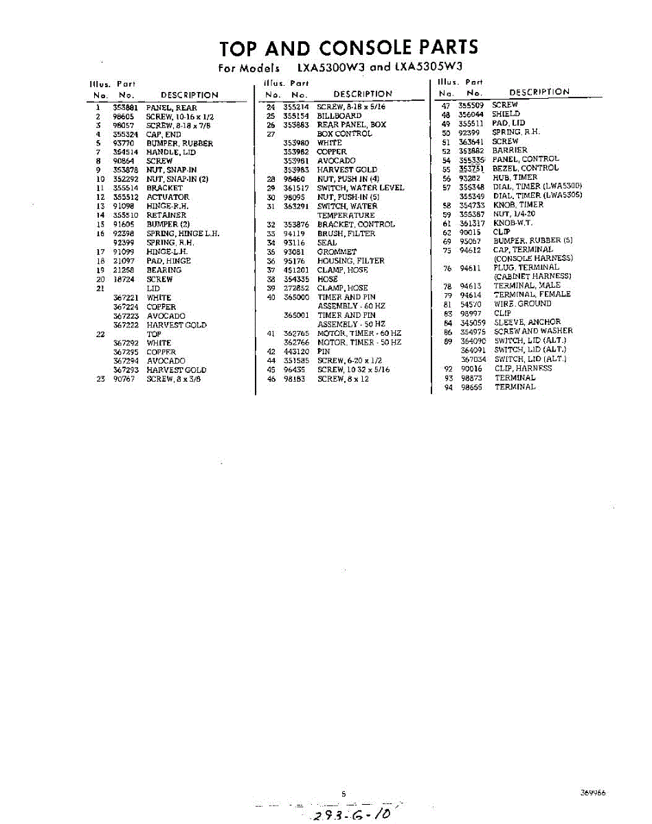 Parts for Whirlpool LXA5300W3: 05 - Section Parts