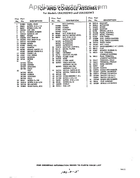 Parts for Whirlpool LXA5500W3: 05 - Section Parts