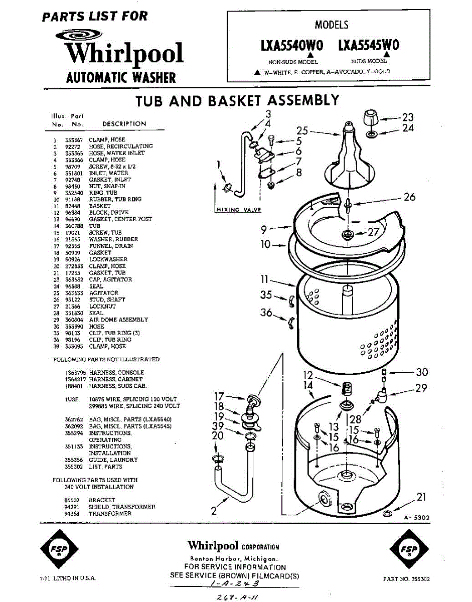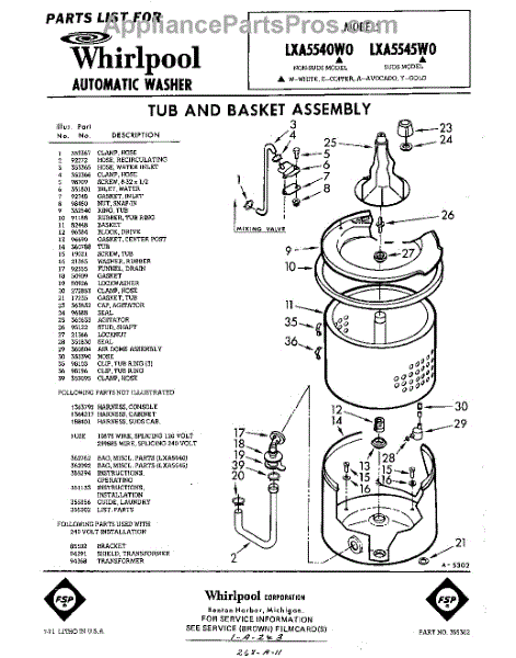 Parts for Whirlpool LXA5540W0: 01 - Section Parts