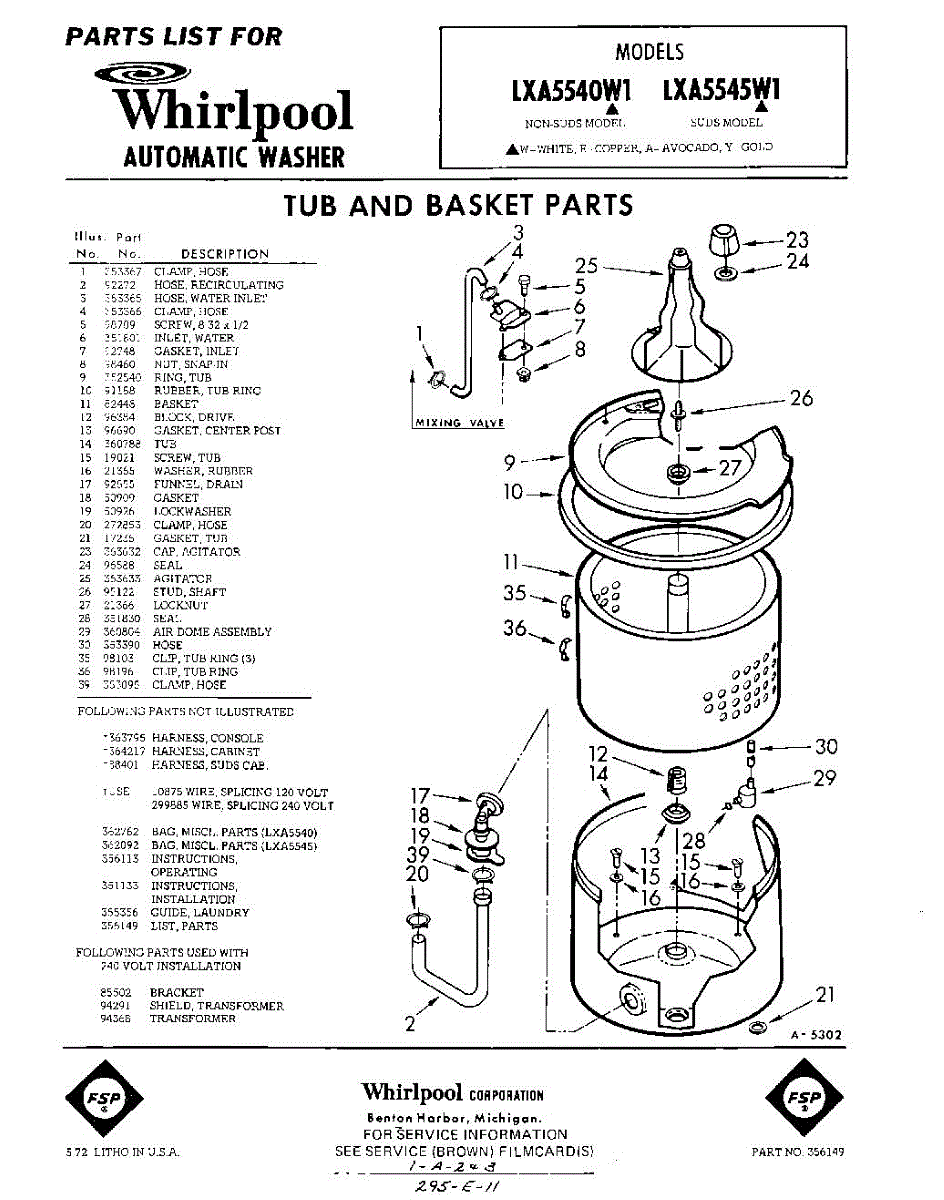 Parts for Whirlpool LXA5540W1: 01 - Section Parts