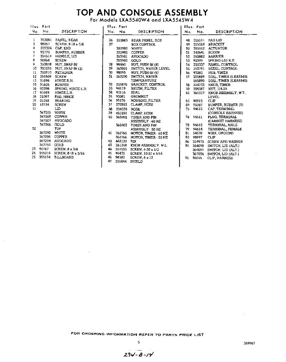Parts for Whirlpool LXA5545W4: 05 - Section Parts