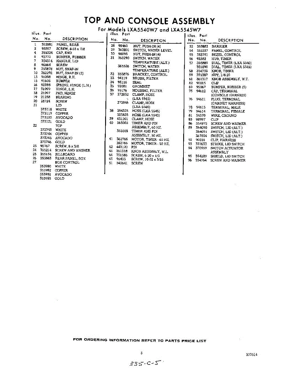 Parts for Whirlpool LXA5545W7: 05 - Section Parts