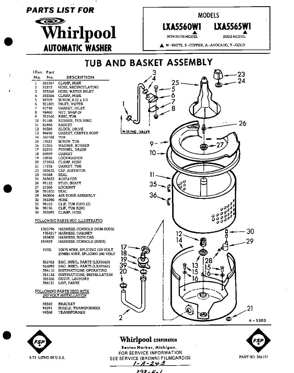 Parts for Whirlpool LXA5560W1: 01 - Section Parts