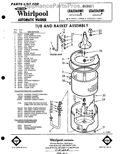 Parts for Whirlpool LXA5565W1: 01 - Section Parts