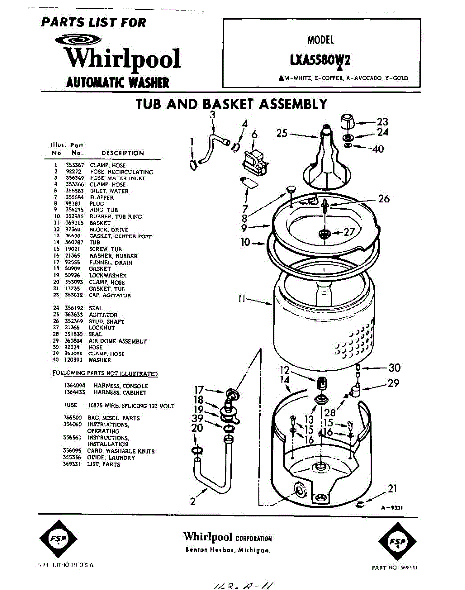 Parts for Whirlpool LXA5580W2: 01 - Section Parts