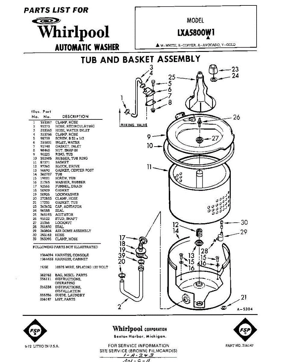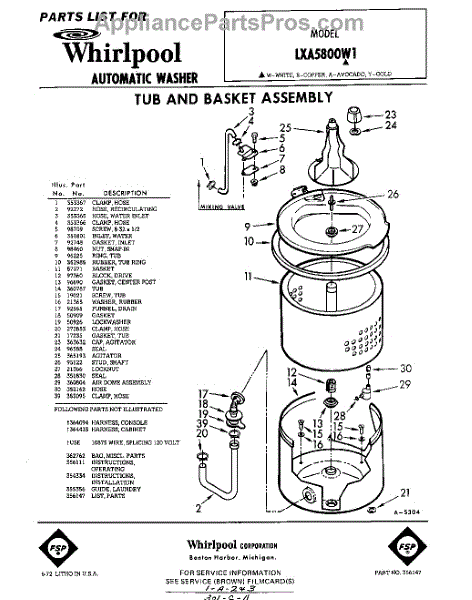 Parts for Whirlpool LXA5800W1: 01 - Section Parts